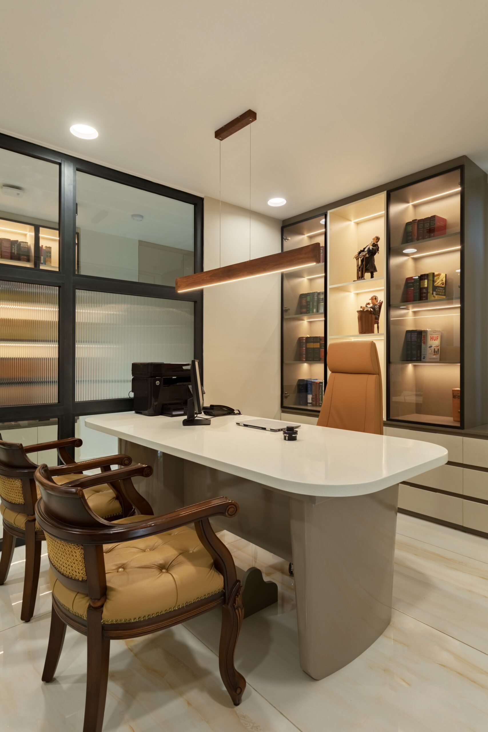 The design philosophy she endured in the project was that while the legal field exudes seriousness and dignity, the idea was to stay clear from the monotonous ambience to strike a delicate balance between minimalism and tasteful fashion-forward design elements.
