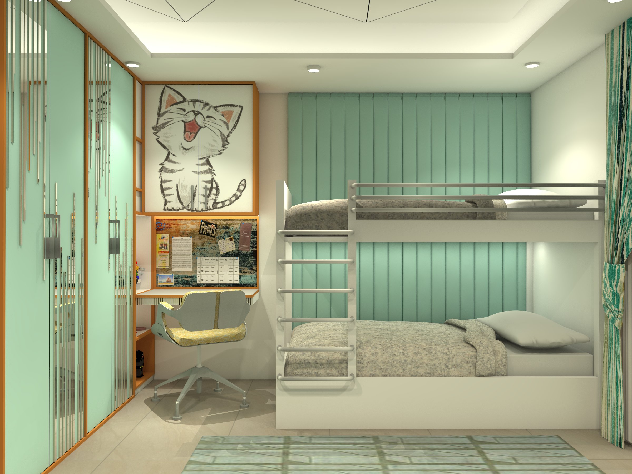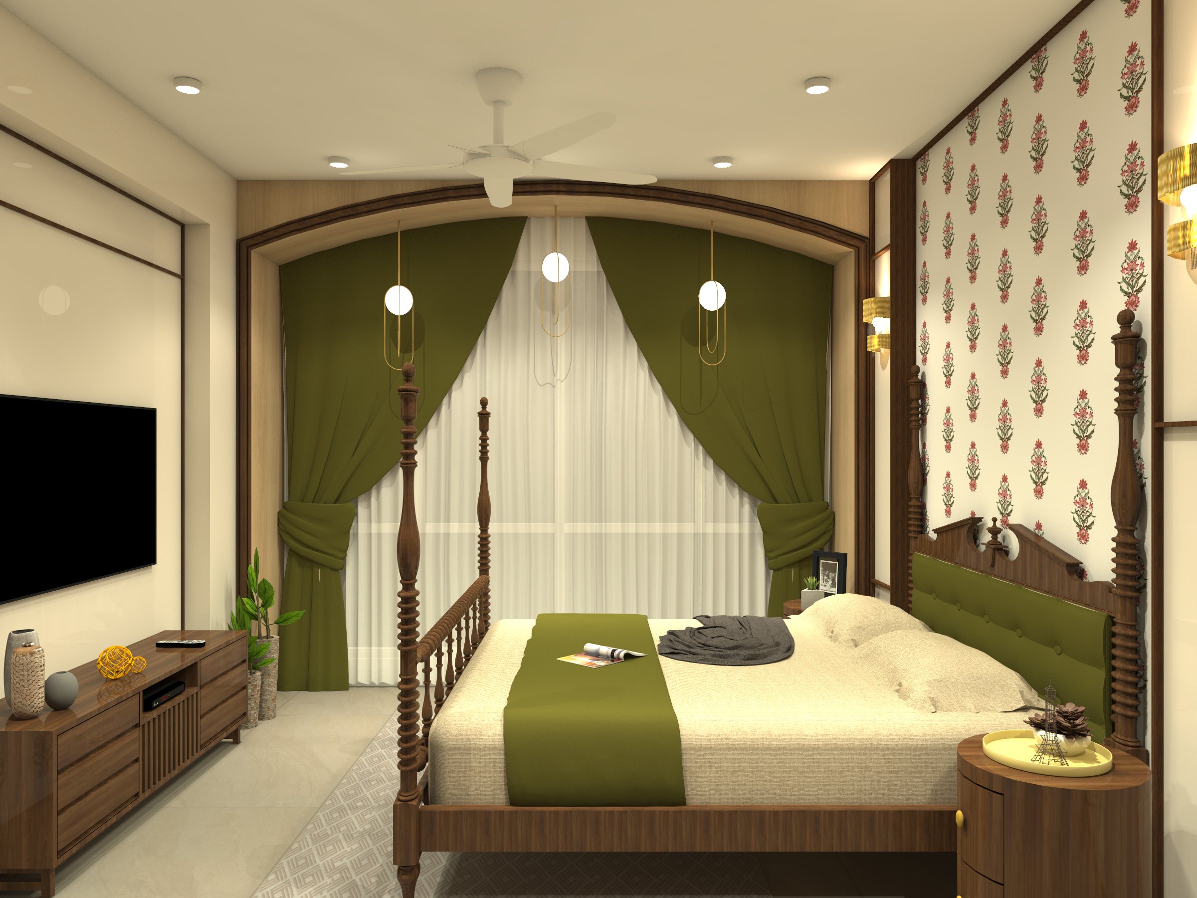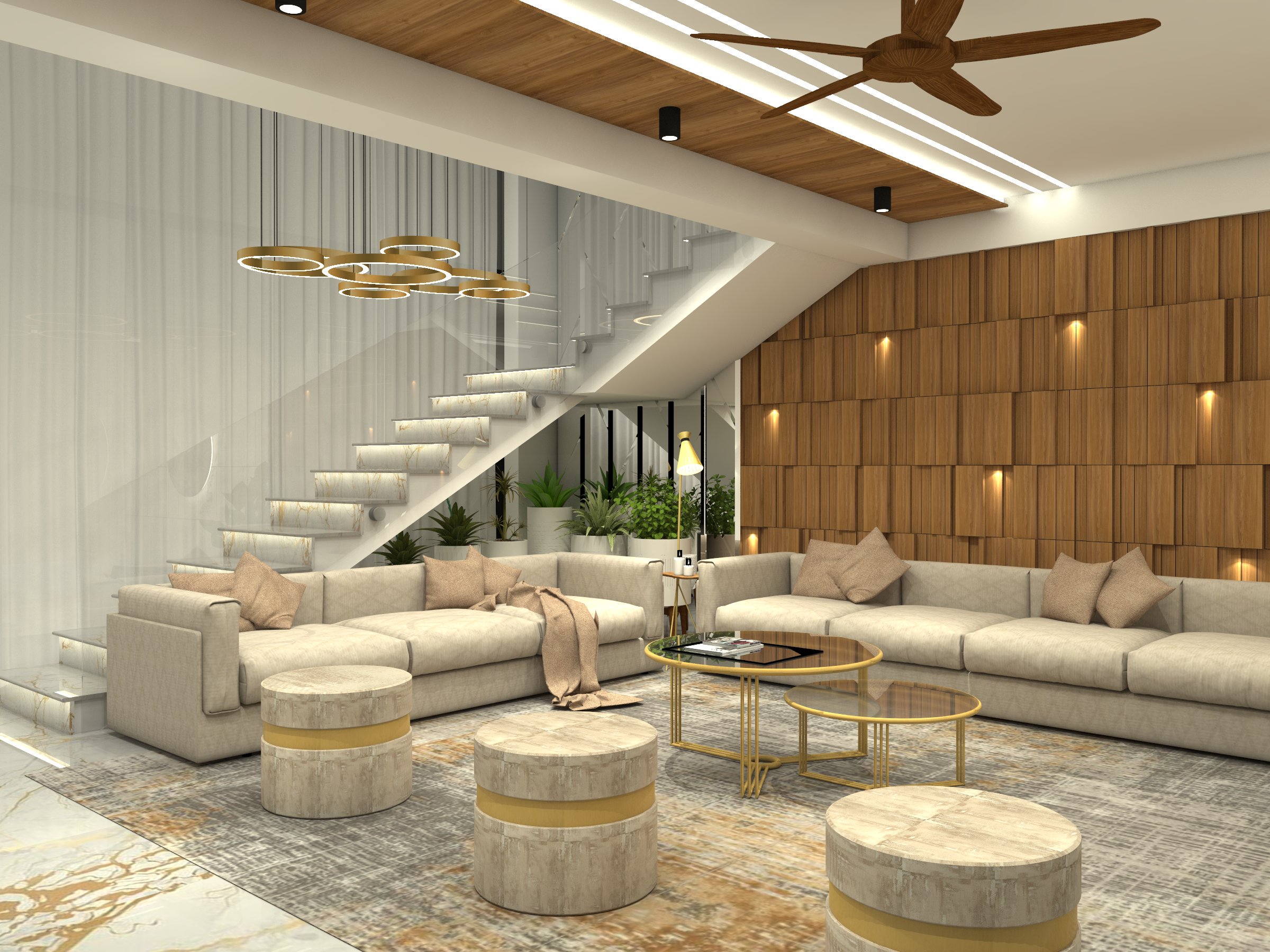 The clients wanted to feel on the top of the world in their penthouse situated on the 23rd floor in a mid-tier city. The space was designed keeping in mind the functionality and aesthetics considering the requirements of the penthouse owners. Each room was given a separate highlight element that keeps everyone’s eyes locked. Straight lines with modern furniture and rustic hues were the vision behind the designs of this grand space.